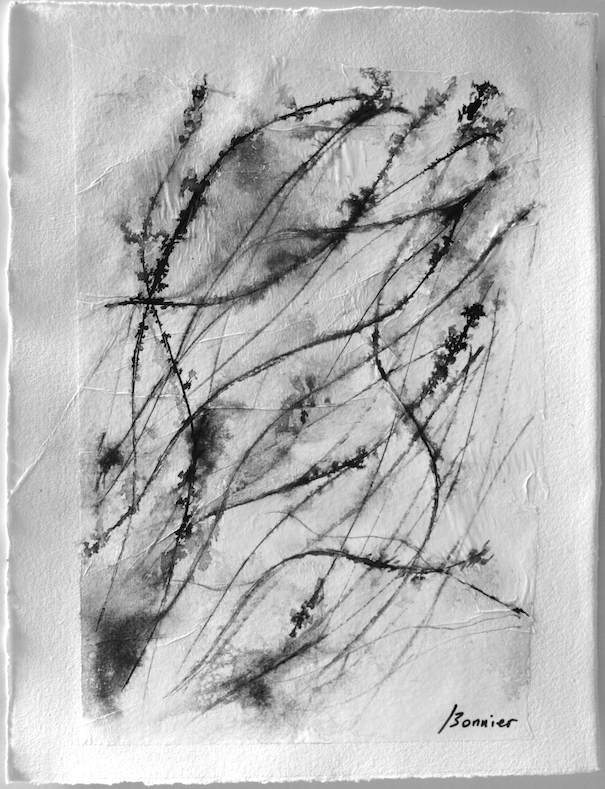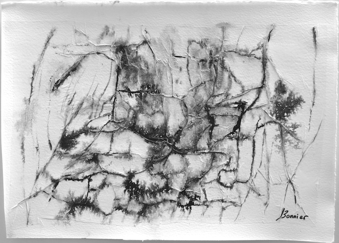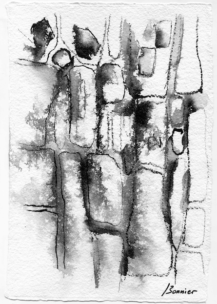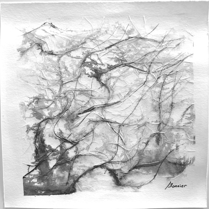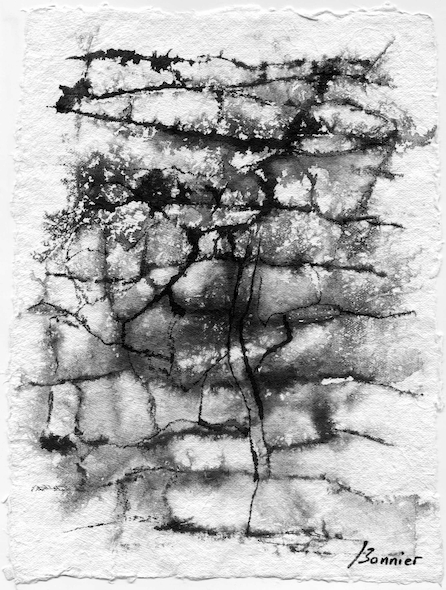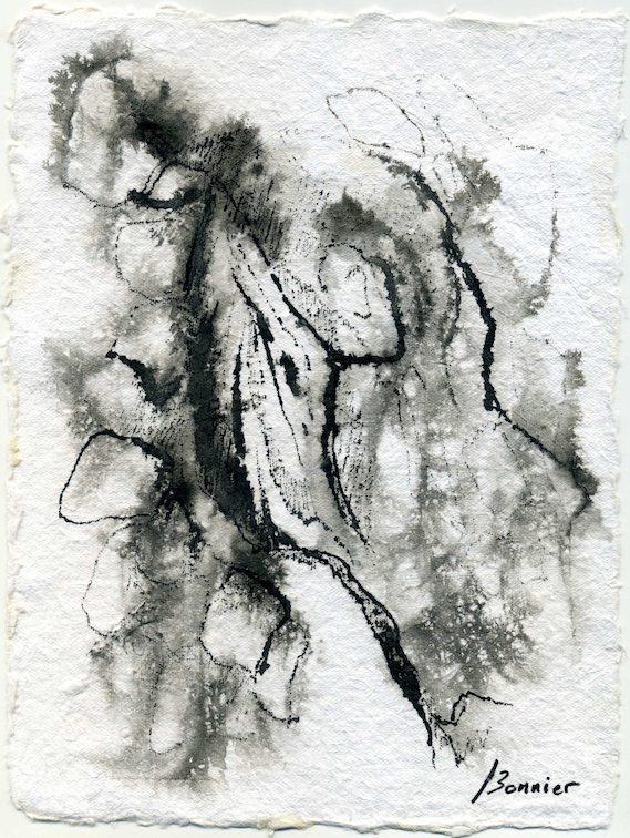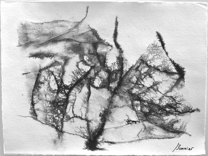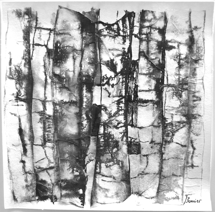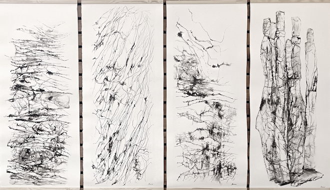 Dessins sur papier bambou à l’encre sur collages