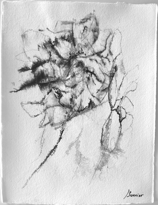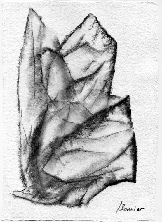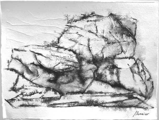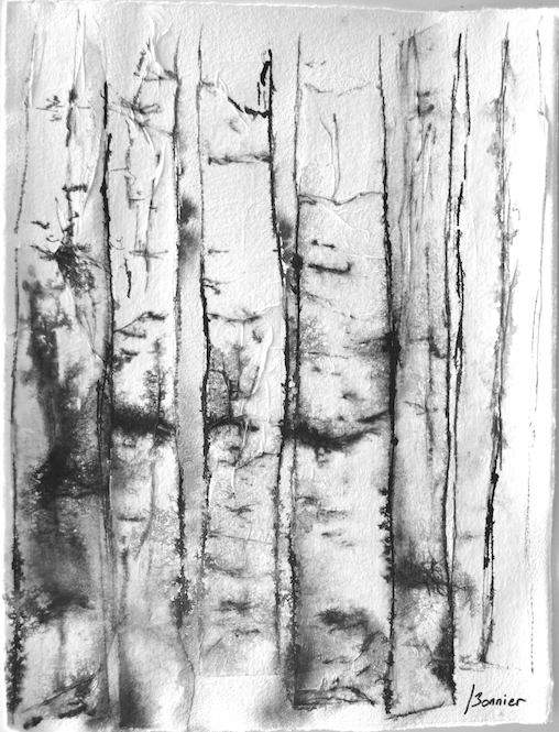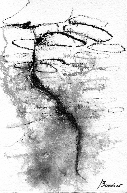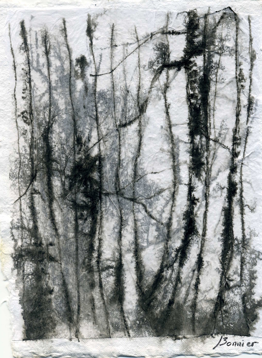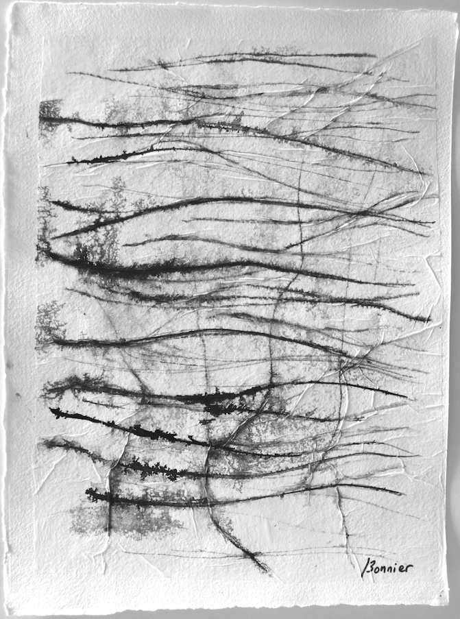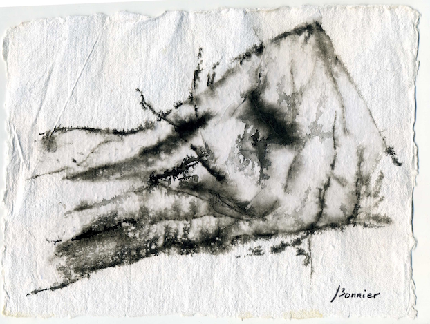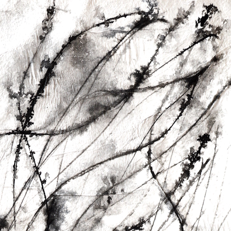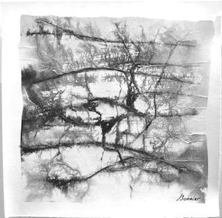 Dessins sur papier bambou à l’encre sur collages