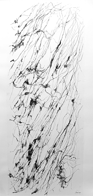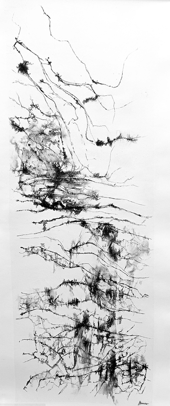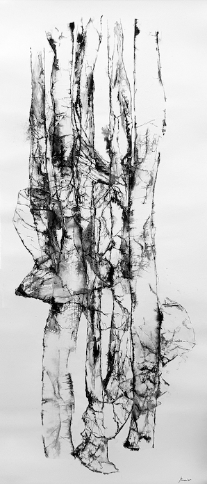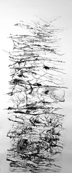 Les bruissements de la Terre – Suspensions – dessins sur collages – 150 x 60 cm